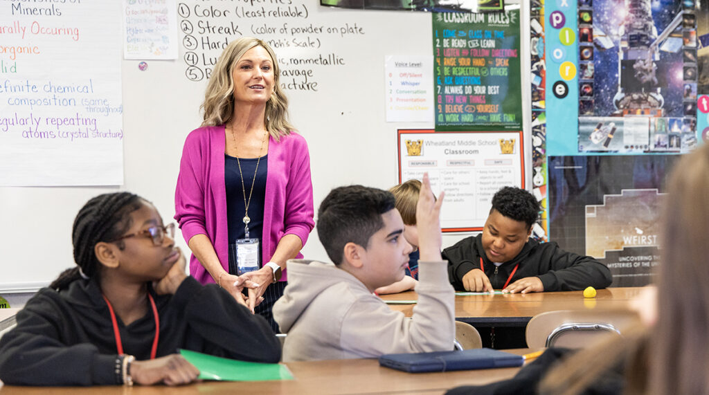 Above: Program Facilitator Laurel teaches a Positive Action lesson at Wheatland Middle School, Lancaster